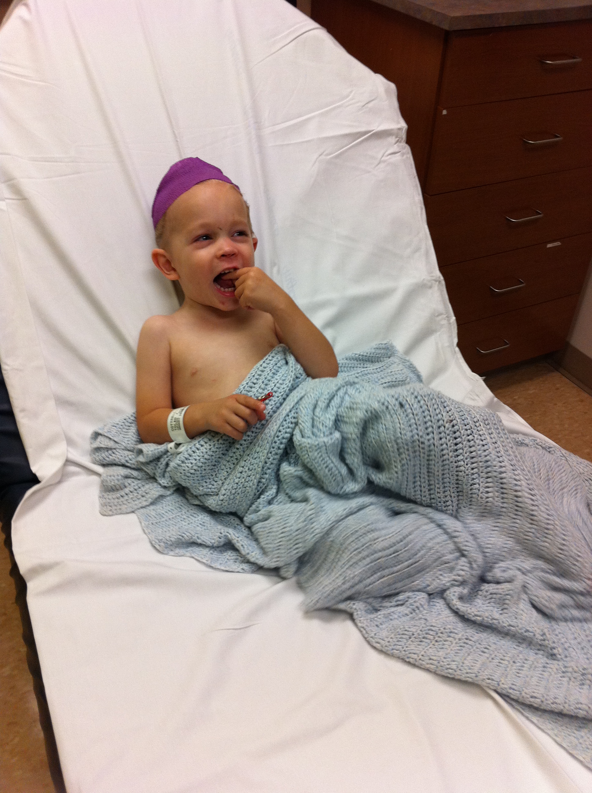 I am thankful that, today, I am home with a bouncing, smiling, albeit it a tired and sore 2 year-old. Staples look good on him, too.