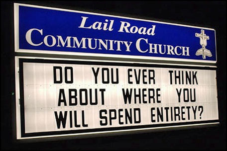 This makes me want to drive around and creep on church signs to see if I can find some funny ones! :)