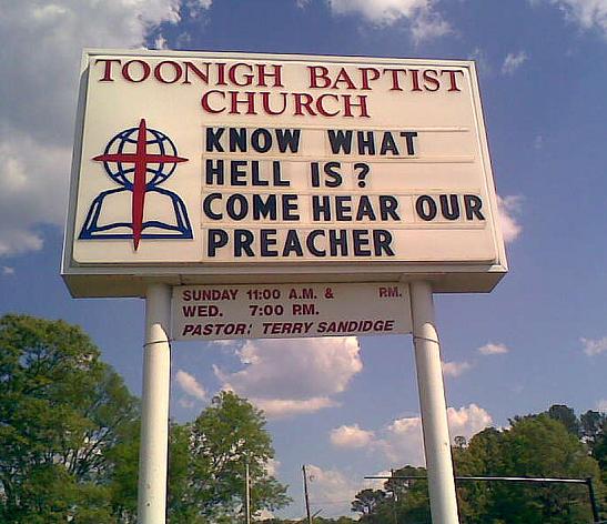 As someone who enjoys preaching, the “Know what Hell is? Come hear our preacher” cracked my ribs in a major way.